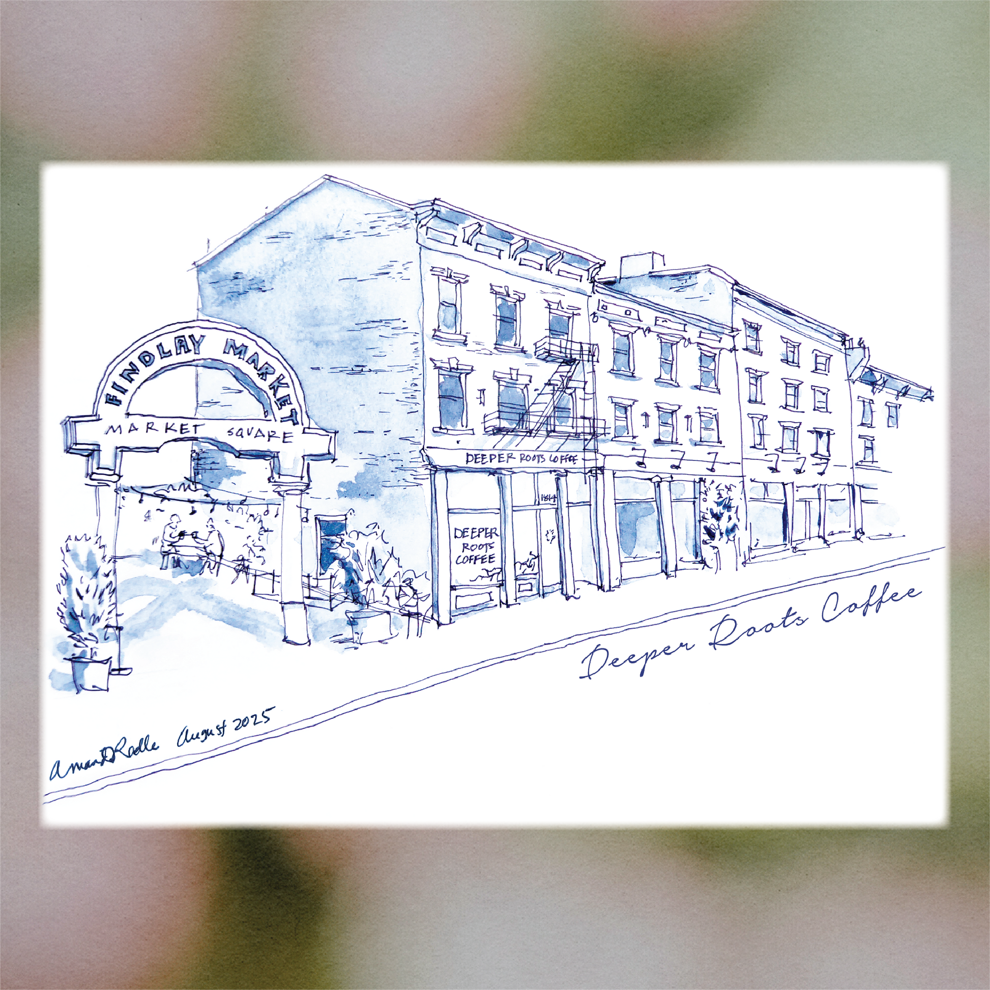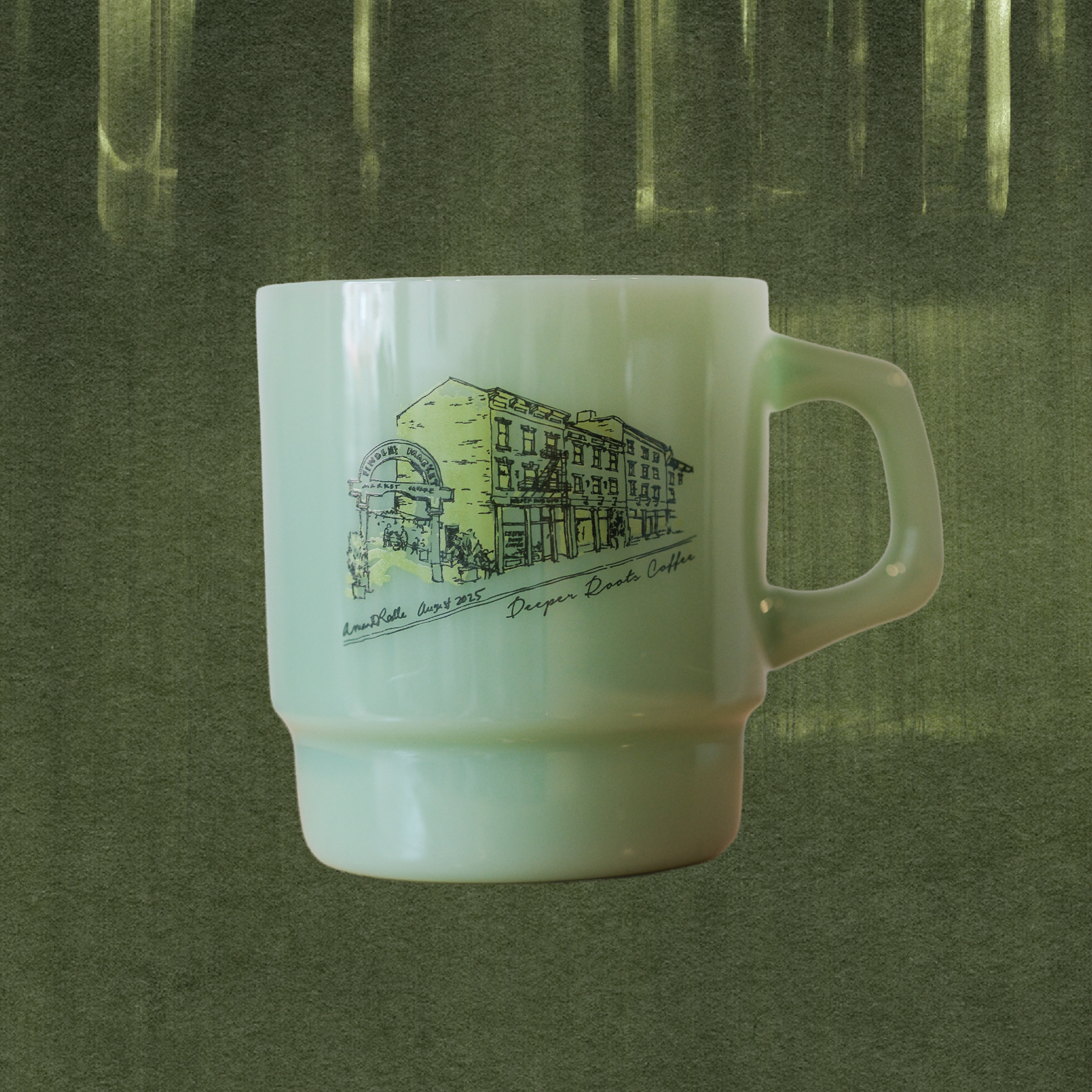 *NEW* Deeper Roots Findlay Market Sketch mugs printed on jade milk glass mugs by Porchlight Design Co.